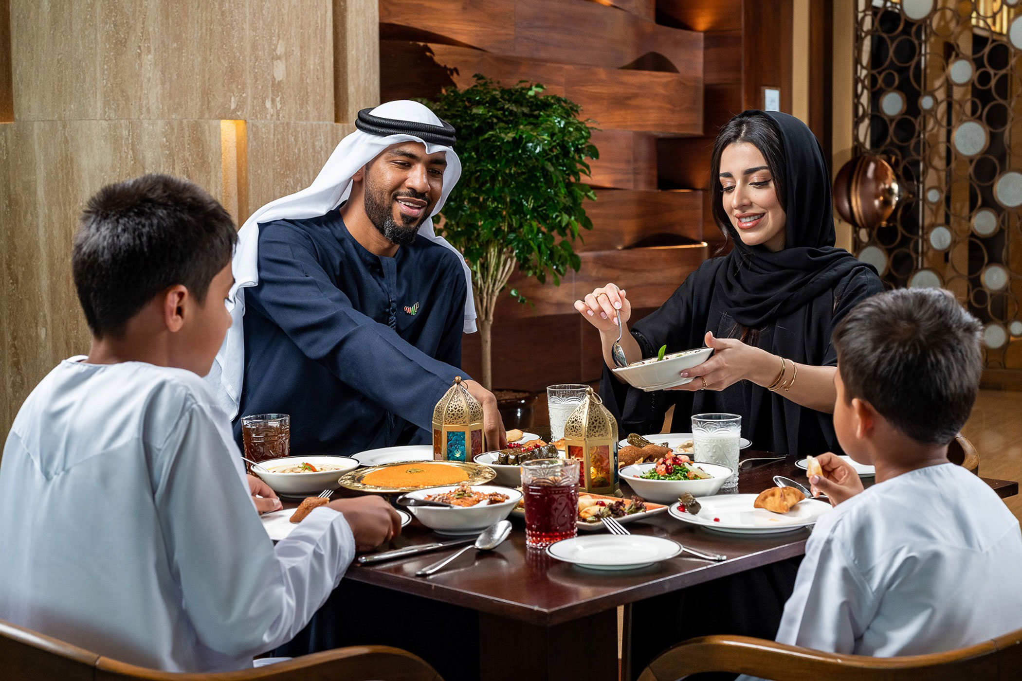 يشكّل الإفطار محور الأمسيات الرمضانية، إذ تقدّم فنادق ومطاعم أبوظبي أروع وجبات الإفطار الزاخرة بالمازات العربية واليخنات الشهية والعصائر الطازجة والحلويات المتنوّعة.