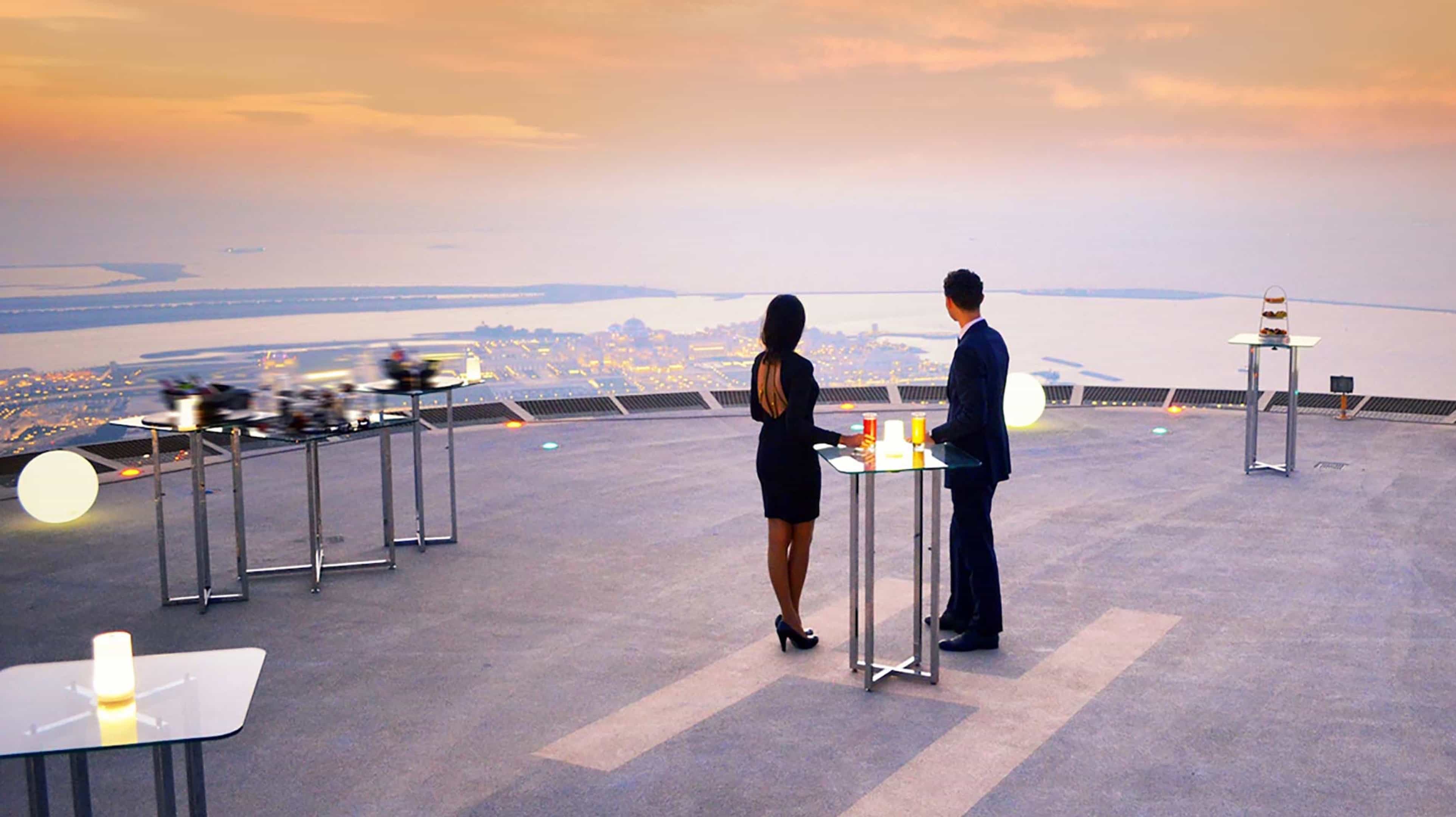 Every month, The St. Regis Abu Dhabi offers a once-in-a-lifetime dining experience 255 metres up in the air. Not for the faint-hearted, 20 guests get to enjoy an exclusive sunset supper on the UAE's highest active helipad where they can bask in the most astonishing Abu Dhabi skyline views.