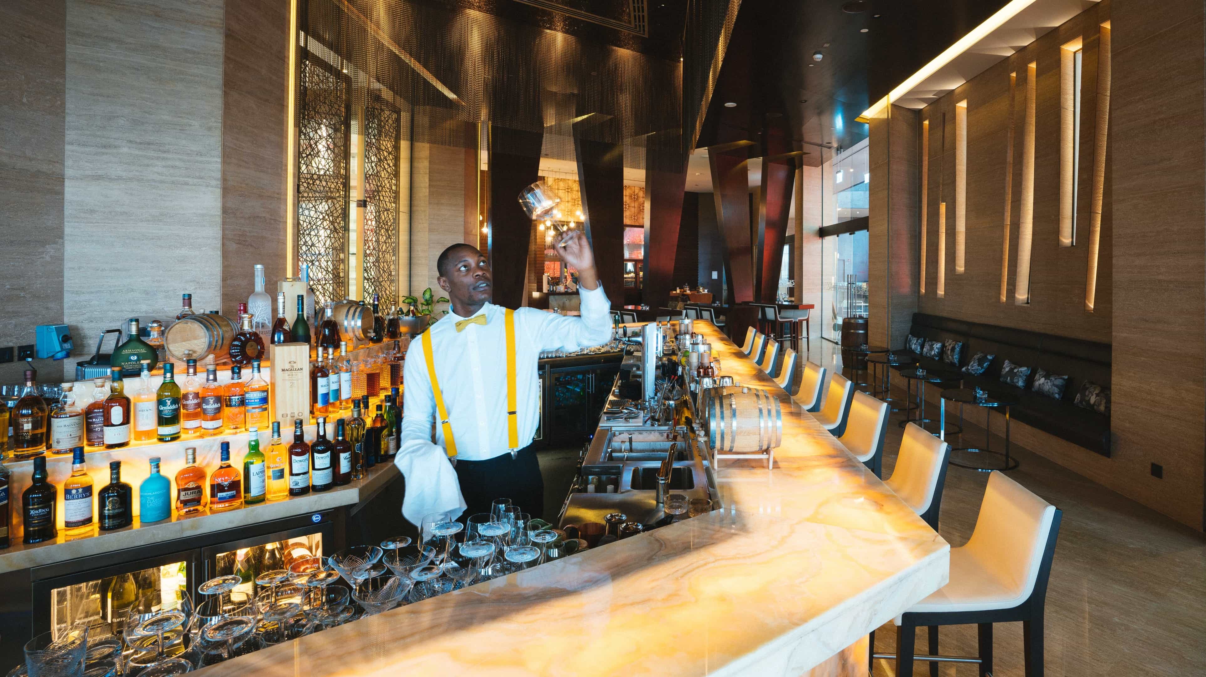Bab Al Qasr Hotel's Loop pool bar is a relaxing spot to lounge at after a swim in the hotel's crystal-blue infinity pool. The staff members at this bar are attentive and entertaining, ensuring that you'll feel right at home.