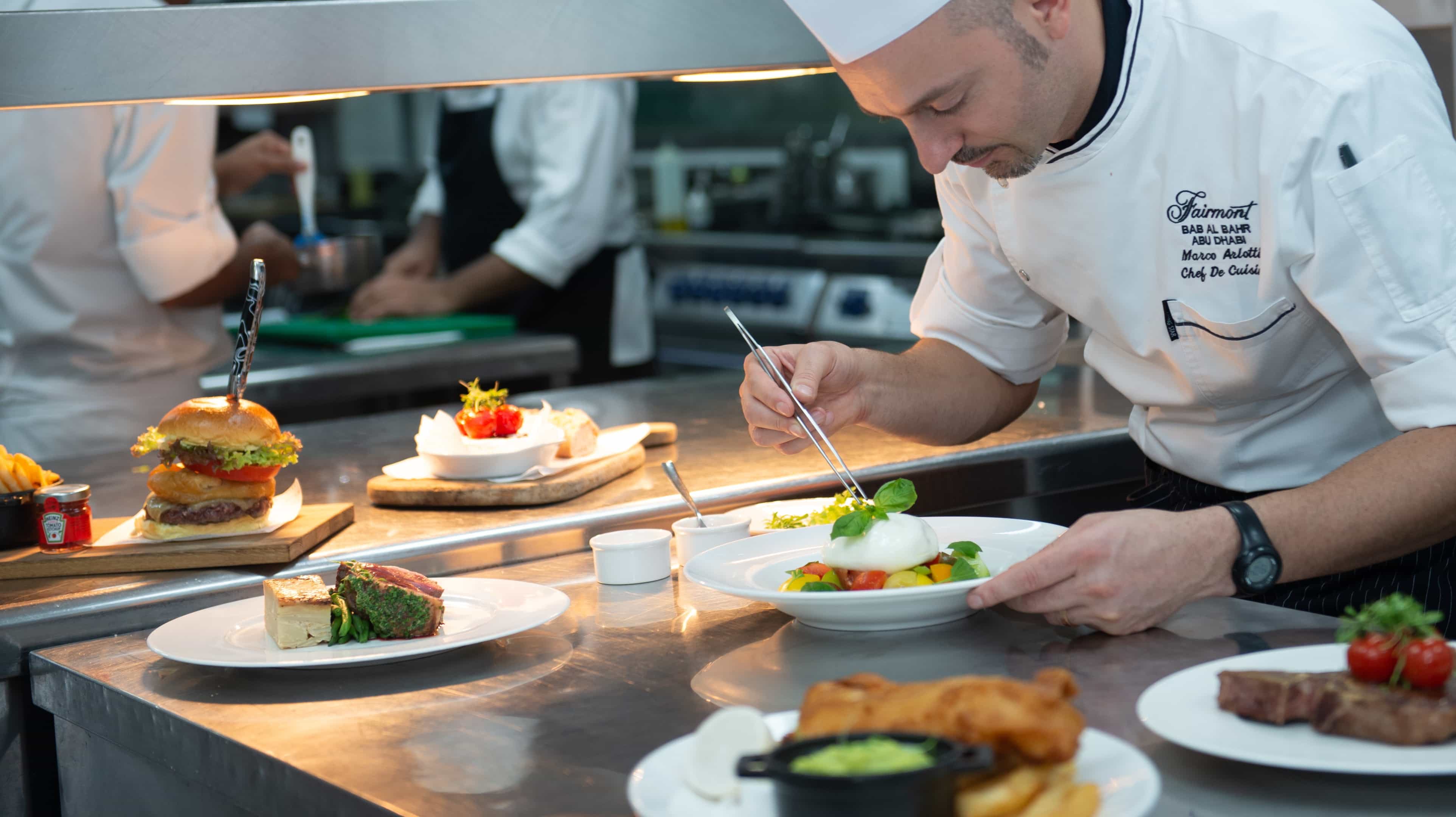 This Fairmont Bab Al Bahr restaurant features classic English dishes and specialty grilled cuisine of award-winning British celebrity chef, Marco Pierre White. Its dramatic interior is highlighted by a back-lit ‘flame’ wall that sets the tone for an innovative and eclectic dining experience.