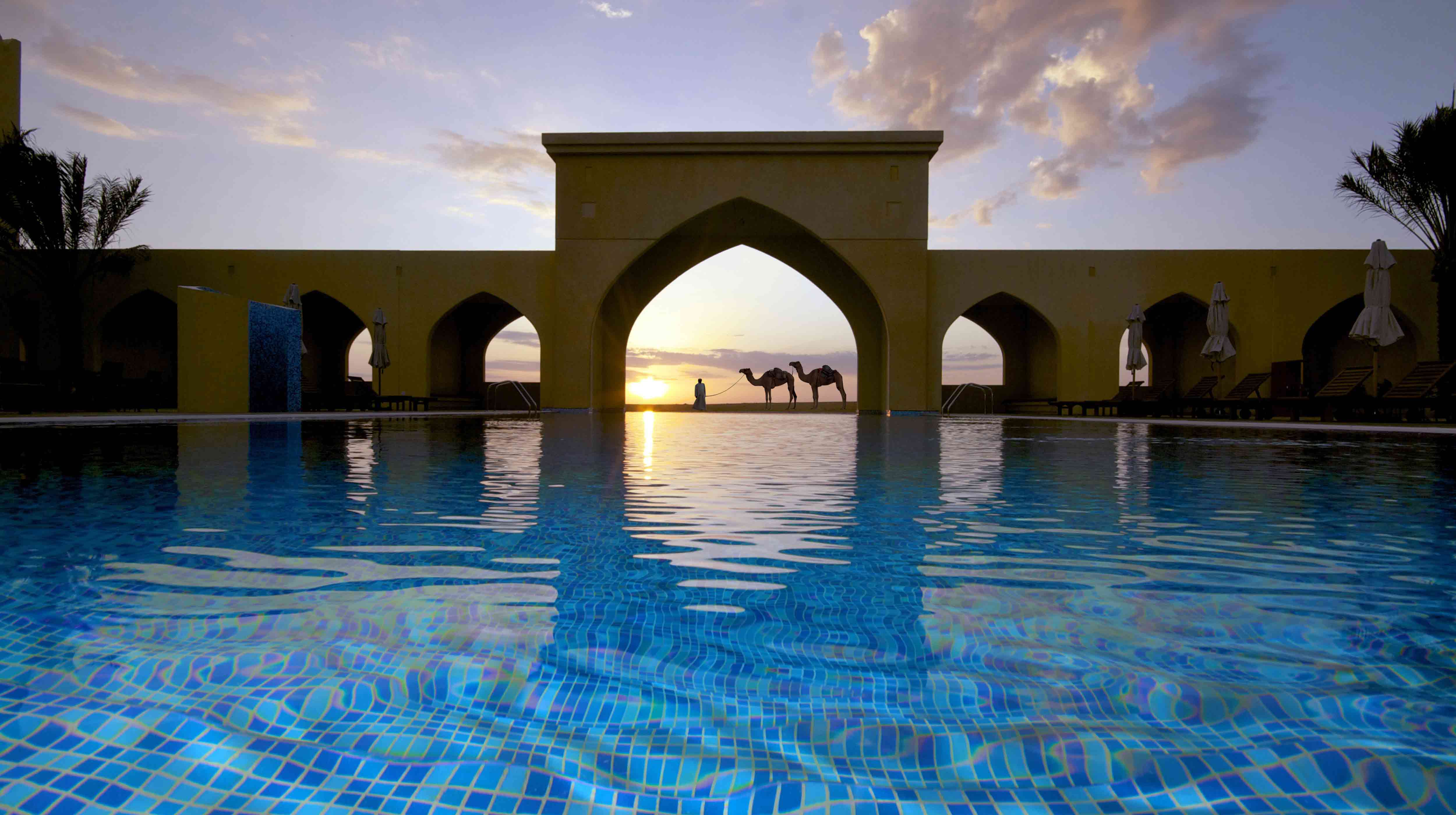 A fairytale destination reminiscent of the tale One Thousand and One Nights, this luxury five-star oasis resembles an old Arabian fortress town, nestled in a valley of towering dunes.