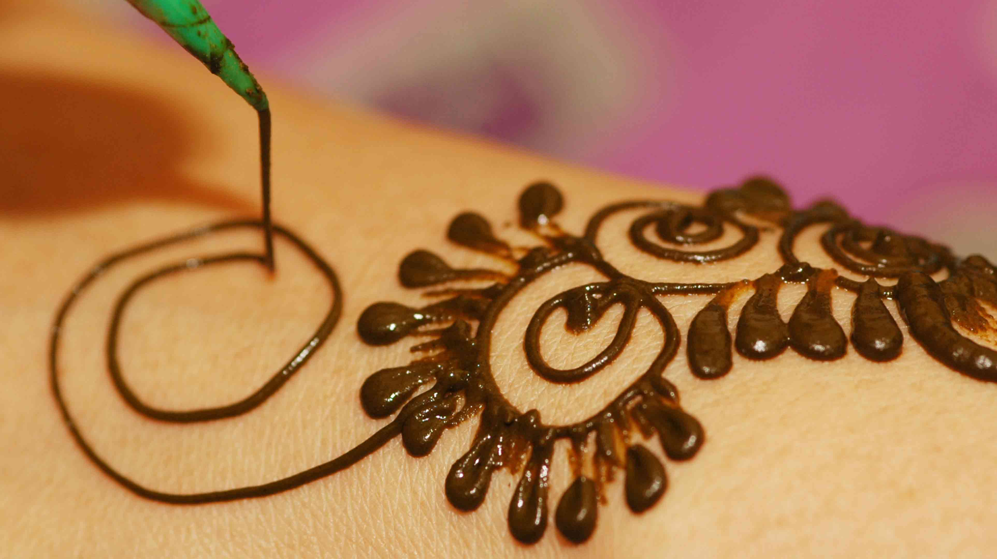 La henna es un tinte de origen vegetal que se utiliza en toda Arabia desde hace siglos. Se obtiene de las hojas del árbol de la henna: se secan, se muelen y luego se les añade agua hasta formar una pasta. Tradicionalmente, se utilizaba para adornar las manos, los pies y el cabello de las mujeres, y también como maquillaje en las bodas. Con ella se pintan «tatuajes» con grandes motivos florales que, además de ser indoloros, desaparecen en una semana.