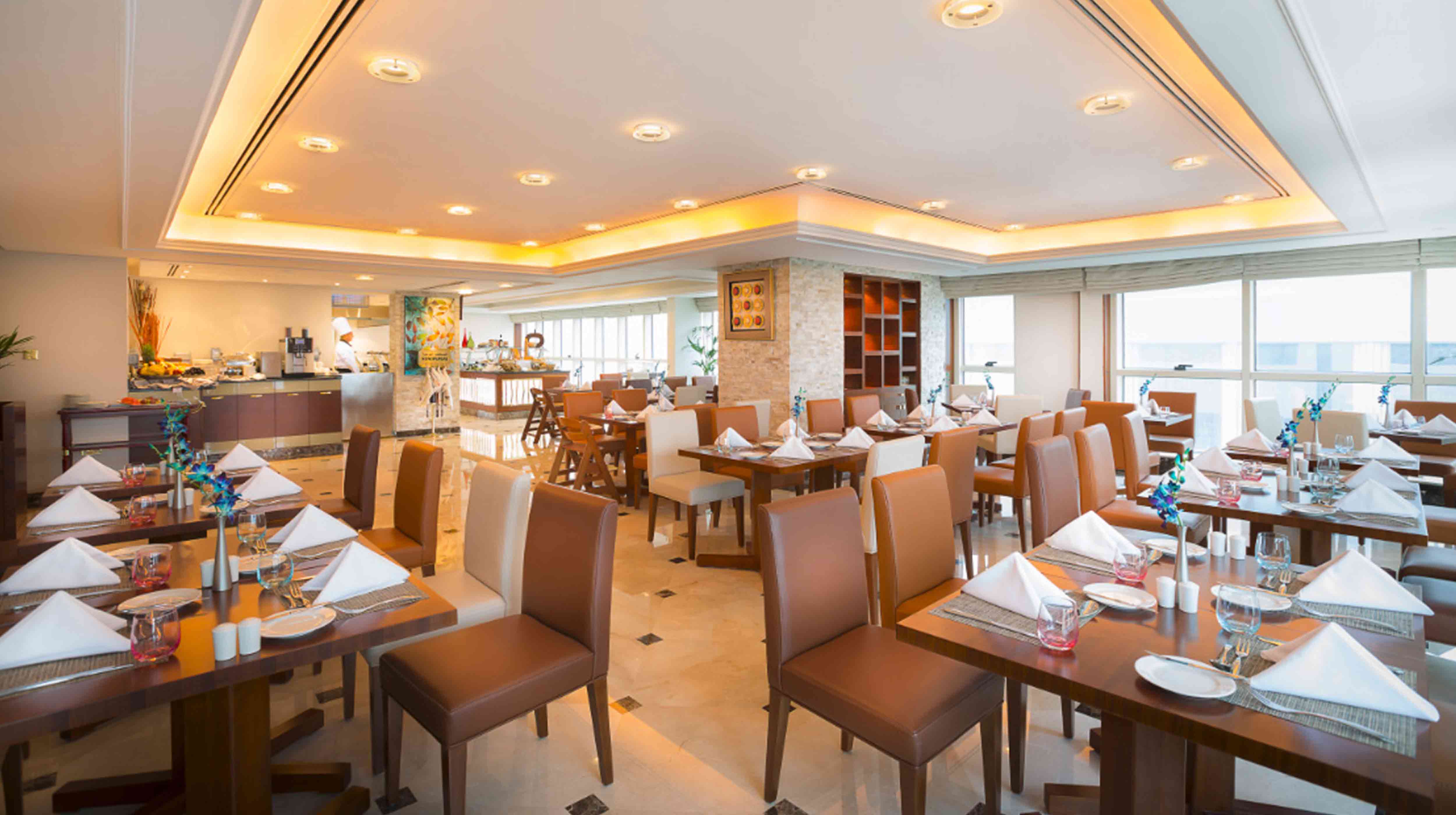 Het restaurant Mezzahto is gevestigd op het dak van Grand Mercure Residence Abu Dhabi en serveert mediterraanse en Arabische gerechten. Gasten kunnen genieten van een internationaal buffet met live kookstations voor het ontbijt en de lunch, of à la carte dineren met geweldig uitzicht.