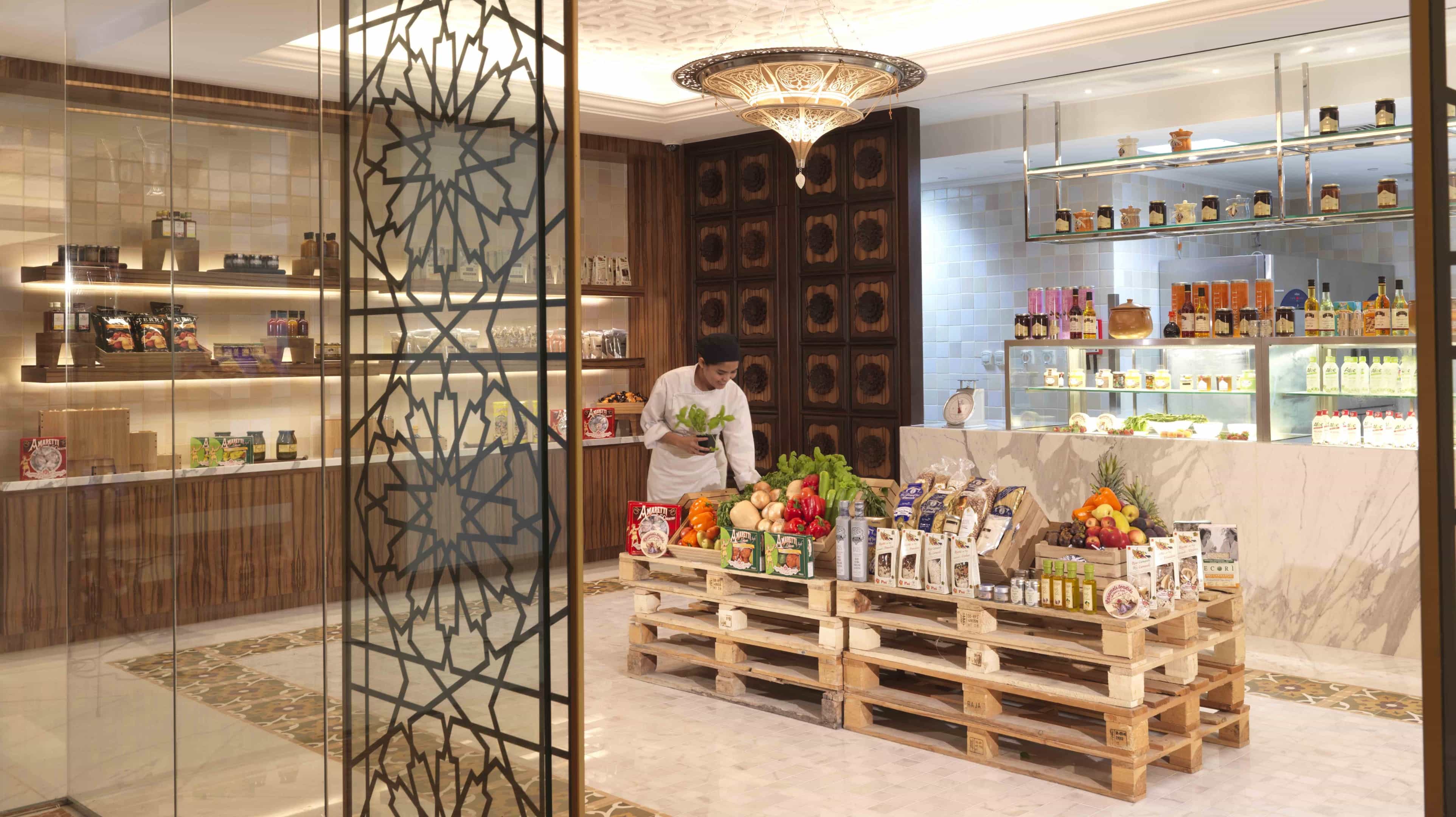 Fresh Basil w hotelu Bab Al Qasr to nowoczesny butikowy sklep delikatesowy pełen wyjątkowych smaków z całego świata.
